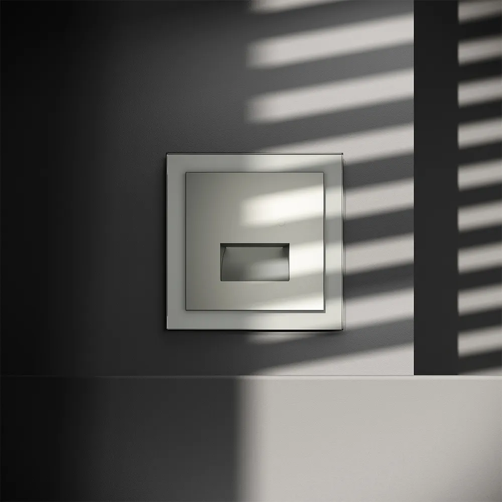 Корпус. Устройства выполнены в минималистичном стиле с утопленным светодиодом в корпусе, который незаметен для глаз и создает эффект света, исходящего из стены. Установка подсветок производится в стандартные подрозетники и подходит для всех рамок серии S70 от Voltum.