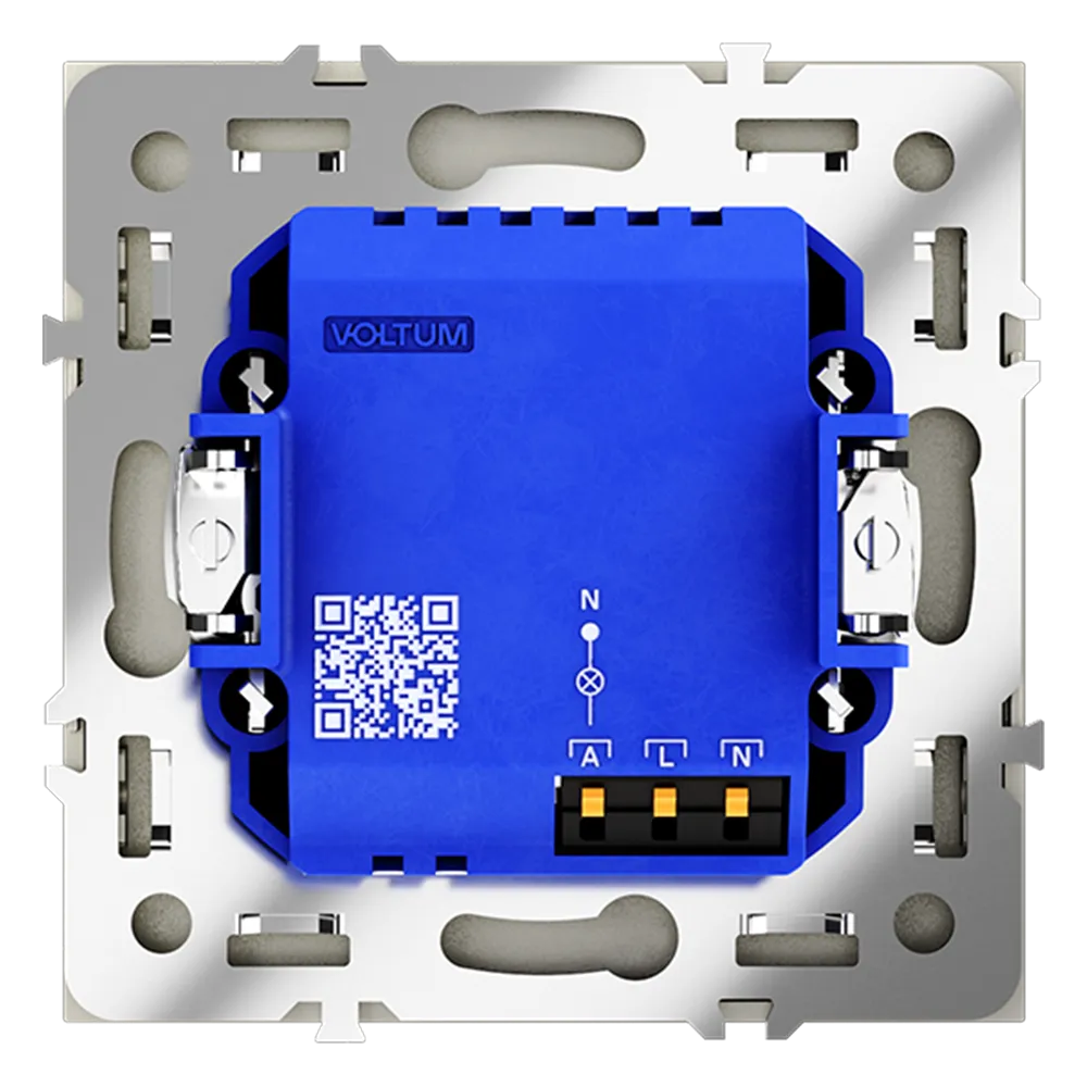 Корпус. Панель управления датчиком расположена под передней накладкой. Устройство монтируется в стандартный подрозетник и совместимо со всеми рамками серии S70 Voltum. Дизайн выполнен в единой фирменной стилистике. Основной материал корпуса — долговечный и негорючий поликарбонат.