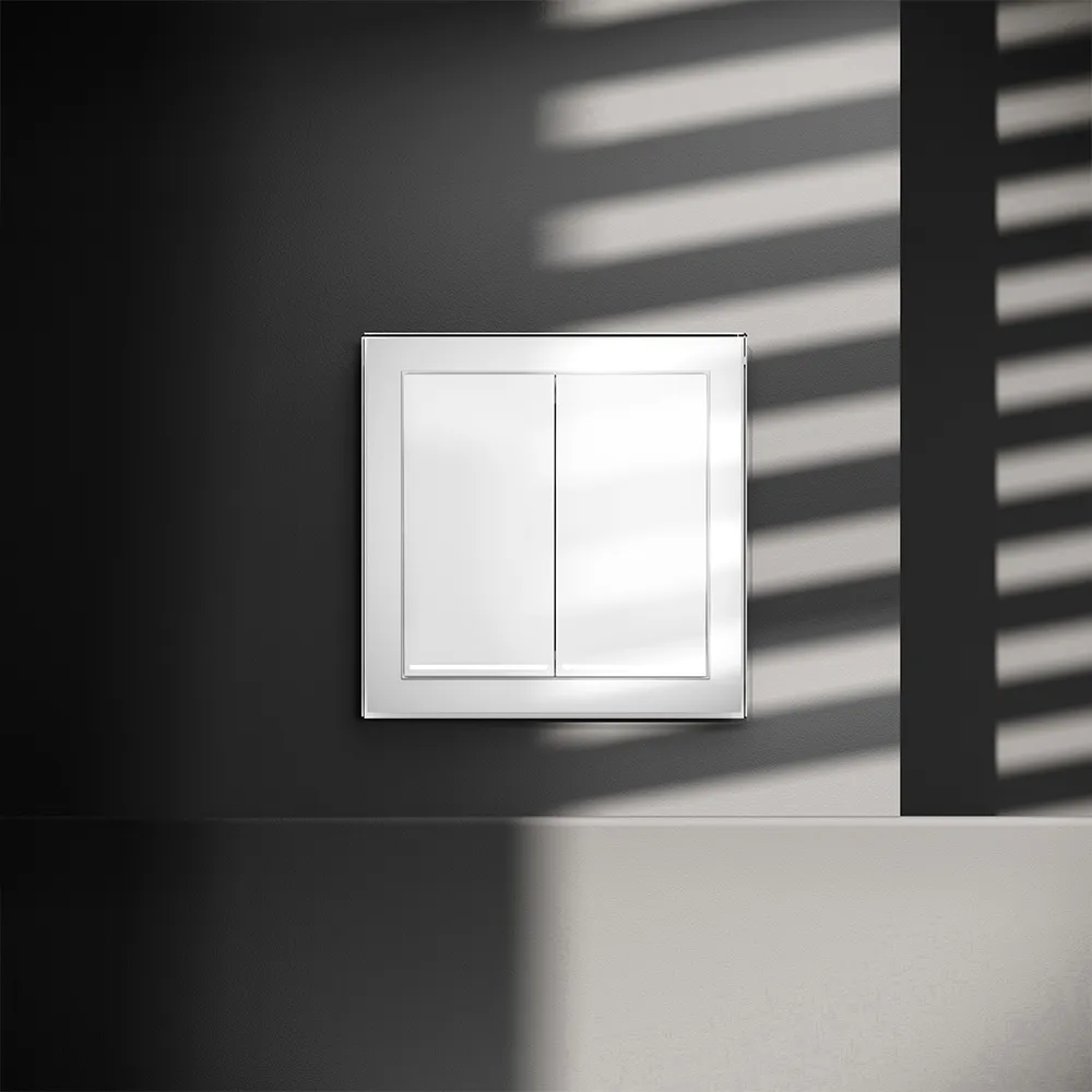 Выключатель полностью совместим с рамками из пластика и закалённого стекла той же серии и гармонично сочетается с другими устройствами VOLTUM S70 — от розеток до терморегуляторов и датчиков движения.