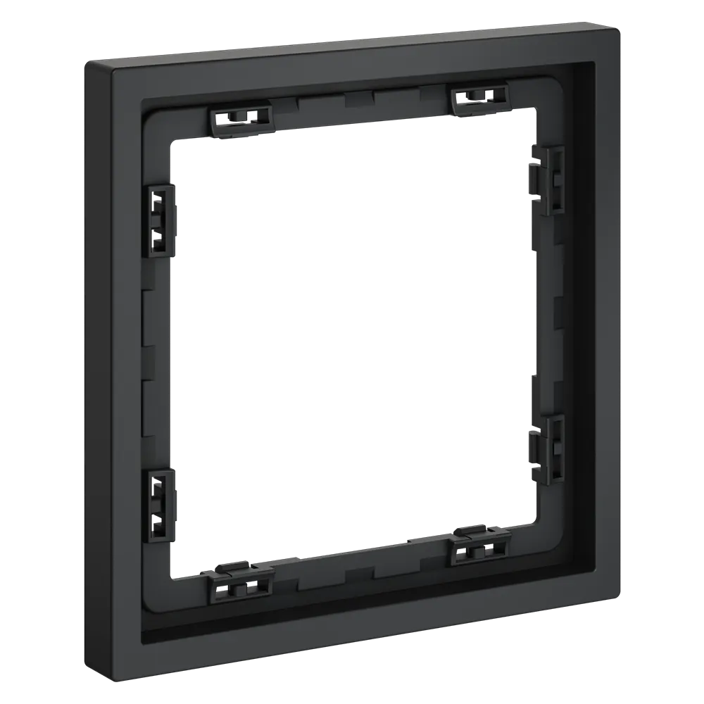 Обеспечивает быстрое и легкое соединение механизма с рамкой. Восемь фиксаторов по периметру нивелируют неровности стены и надежно удерживают конструкцию.